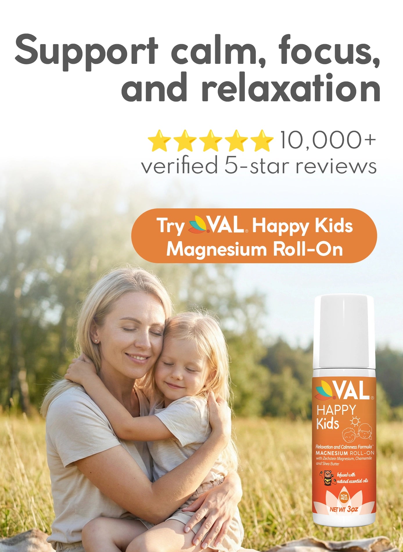 Calm, Focus & Better Sleep Roll-On for Kids | Pure Zechstein Magnesium | VAL Happy Kids